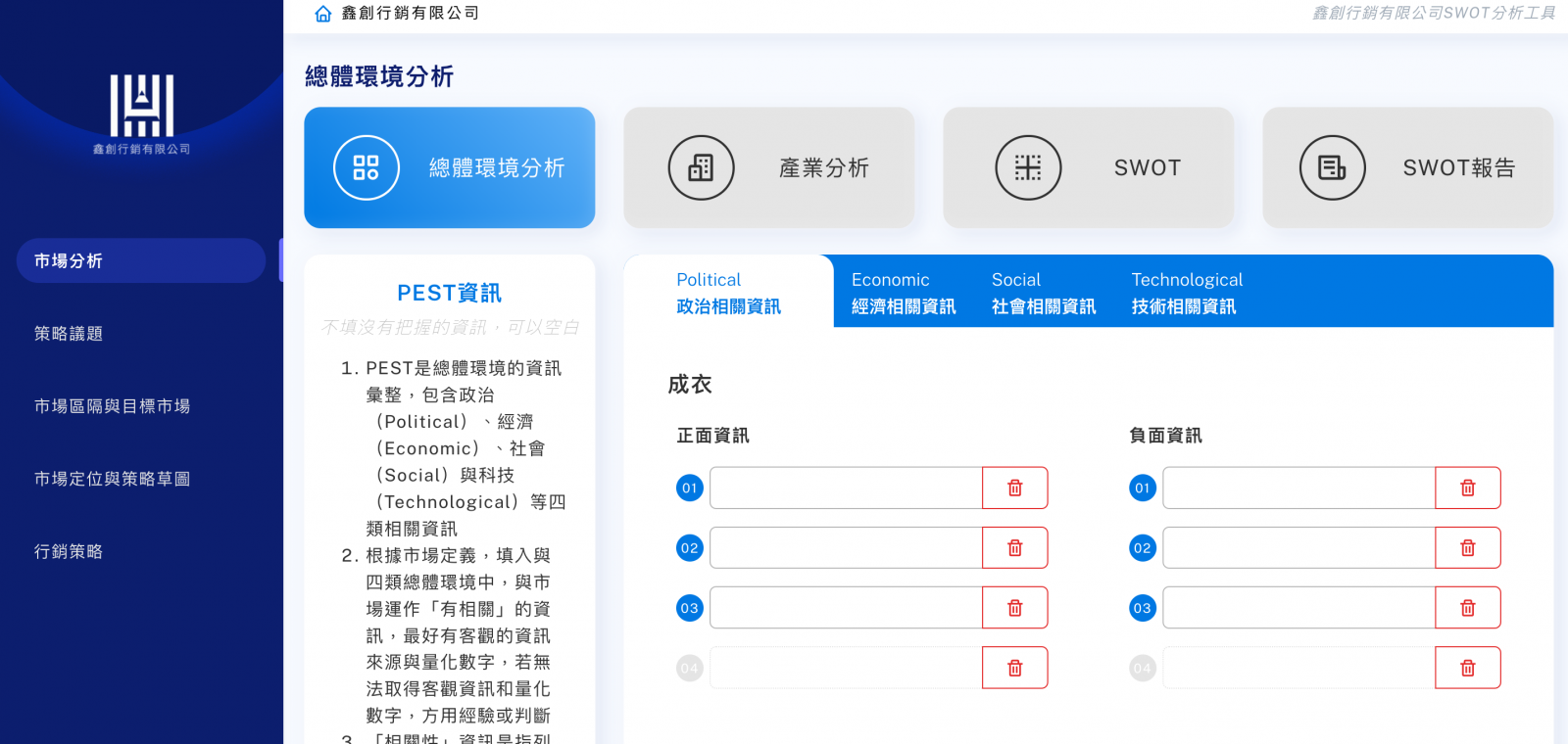 一般的課程和諮詢顧問,都屬一次性的服務,難以讓企業內化和長期使用,鑫創行銷獨創線上策略操作系統,可重覆使用,且做階段性修改,雲端提供即時諮詢服務,輔以Ai工具協助,讓企業和使用者快速上手,同時得出最適切的行銷解方,完成行銷企劃。